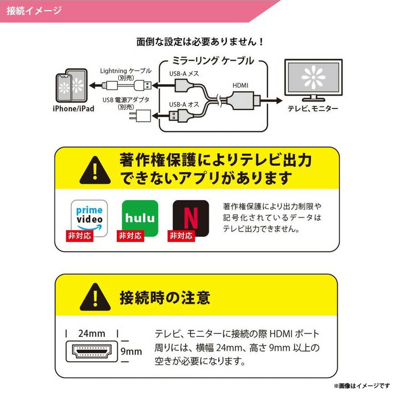 【HDMIケーブル】 iPhone / iPad専用画面をTVに転送できるHDMIミラーリングケーブルです。