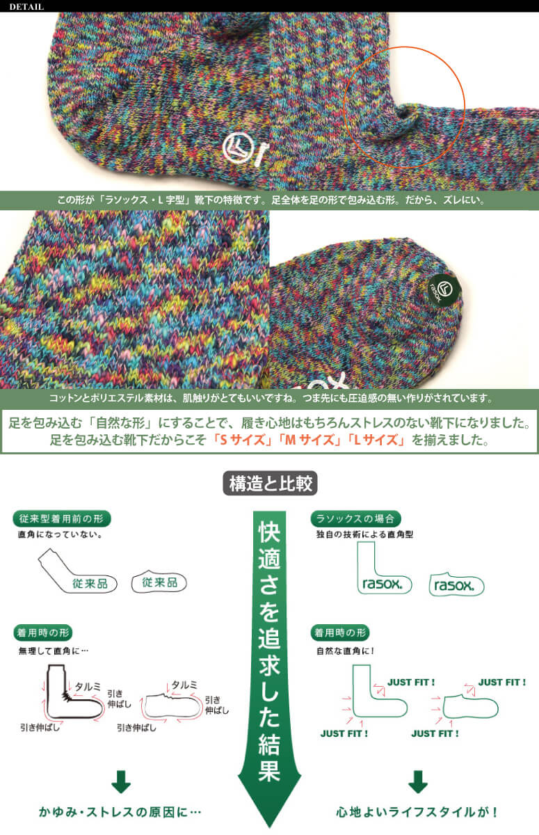 【MAX20%OFFクーポン対象】rasox(ラソックス) 靴下 ソックス スプラッシュ コットン クルー丈 杢 レディース メンズ 女性用 男性用 男女兼用 日本製 【メール便送料無料/コンビニ・代引不可】(ca060lc35)プレゼント ギフト 母の日