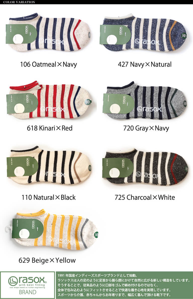 【MAX20%OFFクーポン対象】rasox(ラソックス) 靴下 スニーカーソックス ショート丈 コットンボーダー くるぶし丈 アンクル丈 ロウ 杢 レディース メンズ 女性用 男性用 日本製(メール便送料無料) (ca141sn01)プレゼント ギフト 母の日