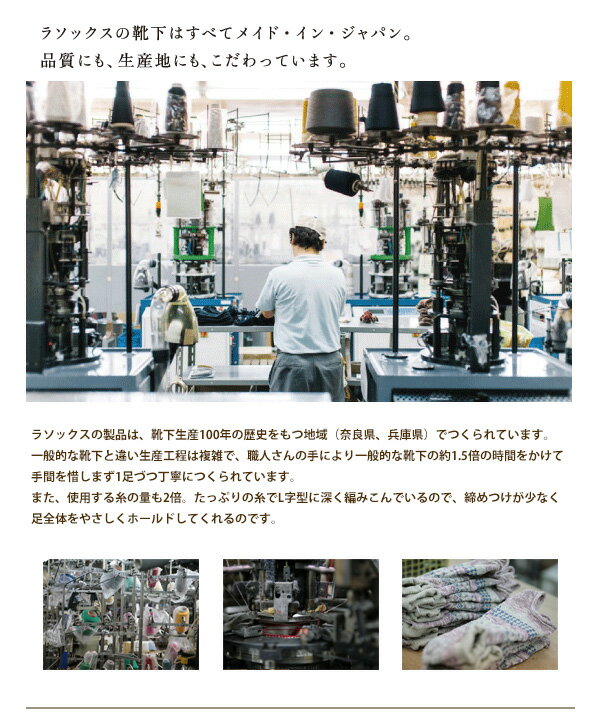 rasox(ラソックス)は、 「直角を基本に運動」する足の形を考えて、 足首部が直角になるようにL字型一体成形編みを採用した 新感覚の靴下ブランドです。
