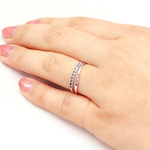 キラキラ輝くブルーダイヤモンドの光が、 さりげなく目を引く華やかさ・・! 2重ラインのリングは指をほっそりと、 華奢に見せてくれる効果もあるそうですよ。